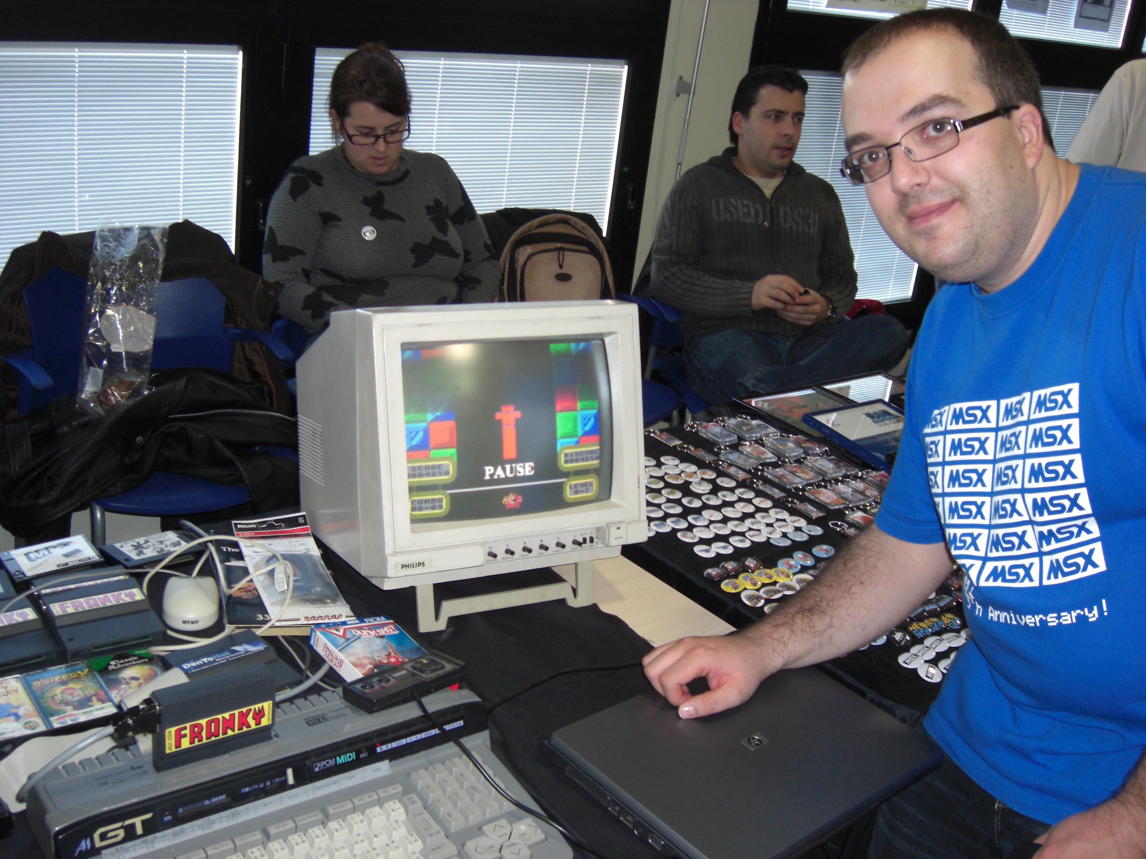 His code detects if Franky is present and does all the initializations to ready the Franky screen mode (MSX screen 2 compatible mode). Also included is the compiled rom file. You need a tool like loadrom for MSX-DOS to load the 32kb rom. The rom first detects if Franky is present, initialize Franky and then shows a snapshot of Arkanoid on Franky and at the same time shows a color rotation on MSX (on the Franky VDP interrupt). Feel free to download, study and use for your existing or new productions. Thank you Armando!